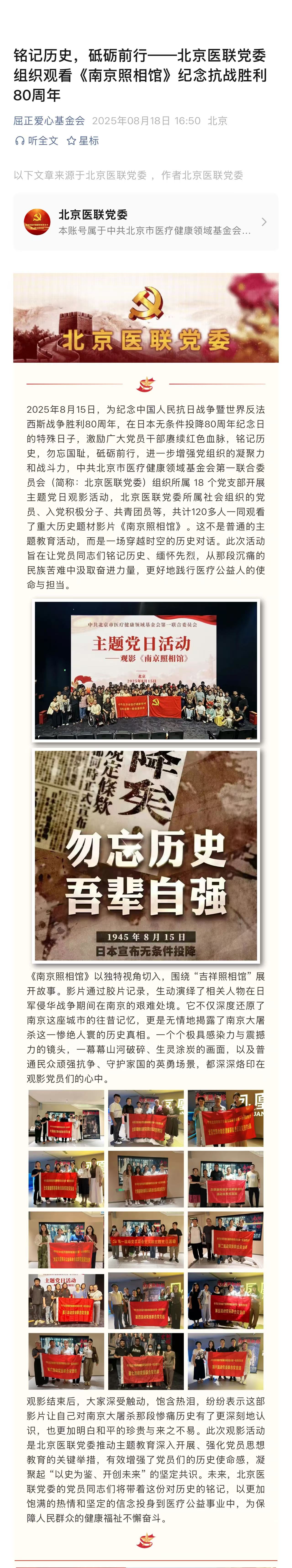 铭记历史,砥砺前行--北京医联党委组织观看《
