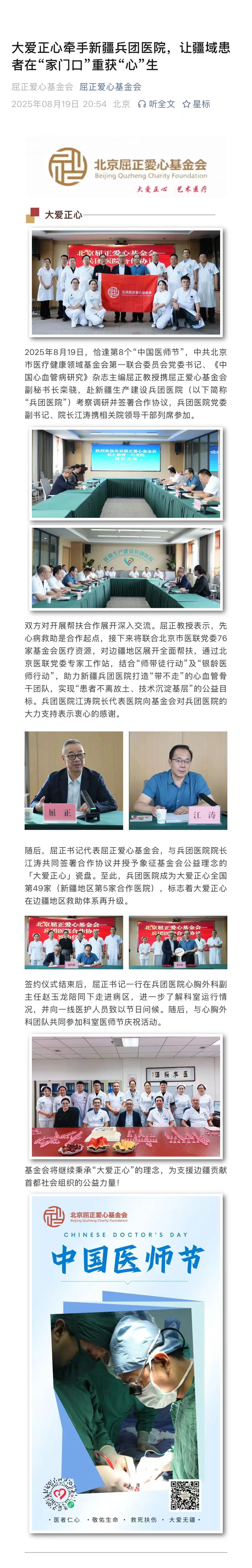 大爱正心牵手新疆兵团医院,让疆域患 者在“家门口”重获“心”生