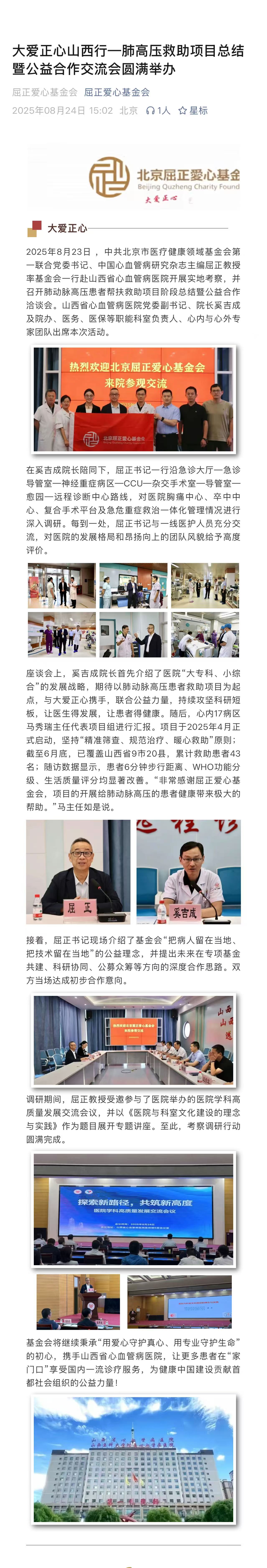 大爱正心山西行一肺高压救助项目总结暨公益合作交流会圆满举办