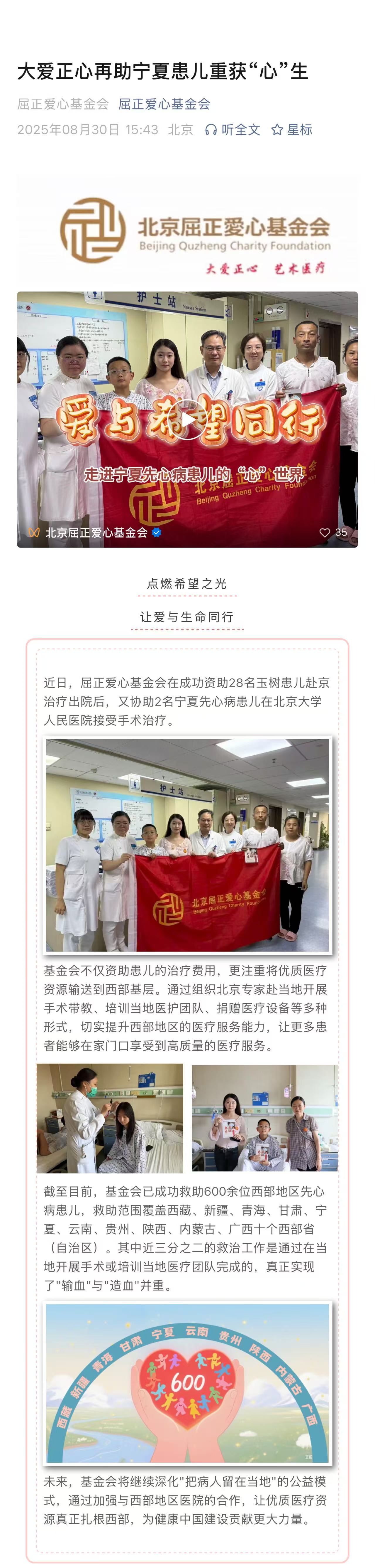 大爱正心落户北大人民医院·拟将救治 30位玉树先心患儿 屈正爱心基金会 屈正爱心基金