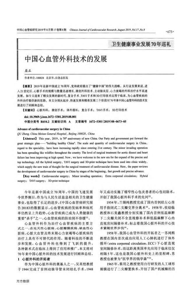 中国心血管外科技术的发展