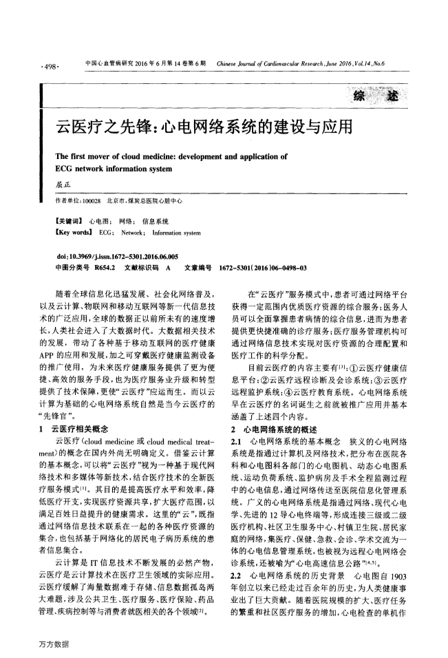 云医疗之先锋_心电网络系统的建设与应用