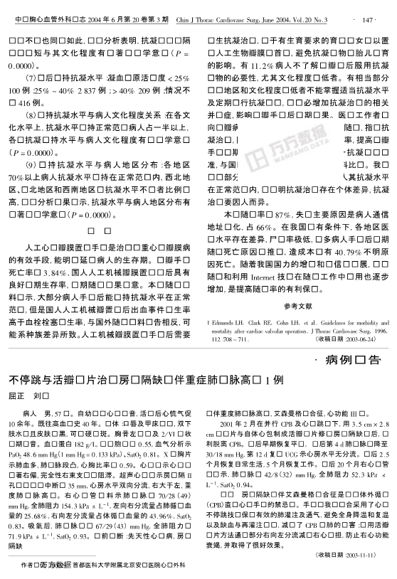 不停跳与活瓣补片治疗房间隔缺损伴重症肺动脉高压1例