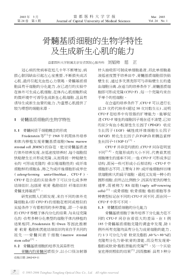 骨髓基质细胞的生物学特性及生成新生心肌的能力