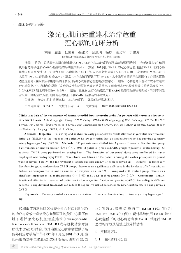 激光心肌血运重建术治疗危重冠心病的临床分析