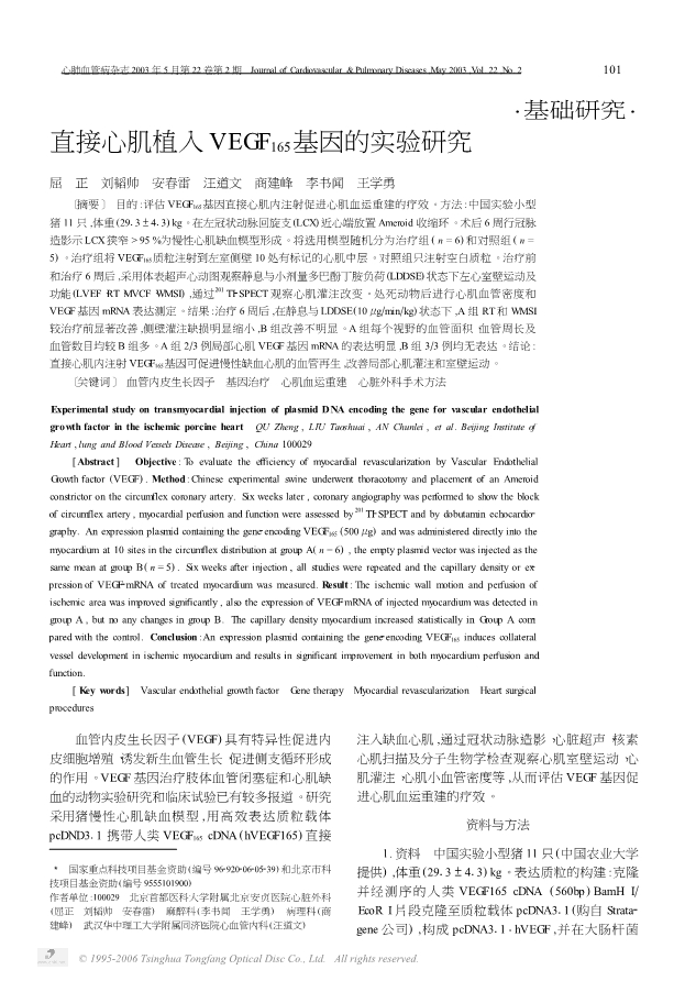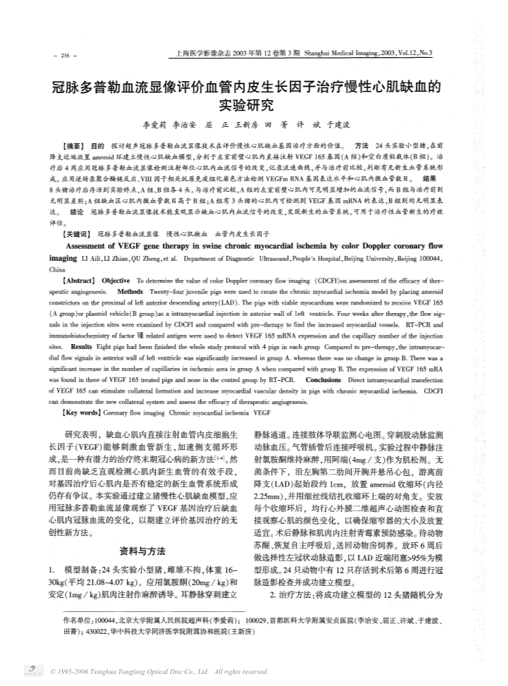 冠脉多普勒血流显像评价血管内皮因子治疗慢性心肌缺血的实验研究