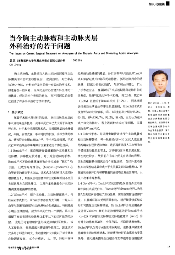 当今胸主动脉瘤和主动脉夹层外科治疗的若干问题