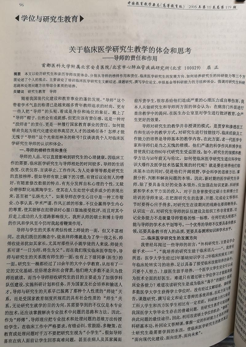 关于临床医学研究生教学的体会和思考导师的责任和作用