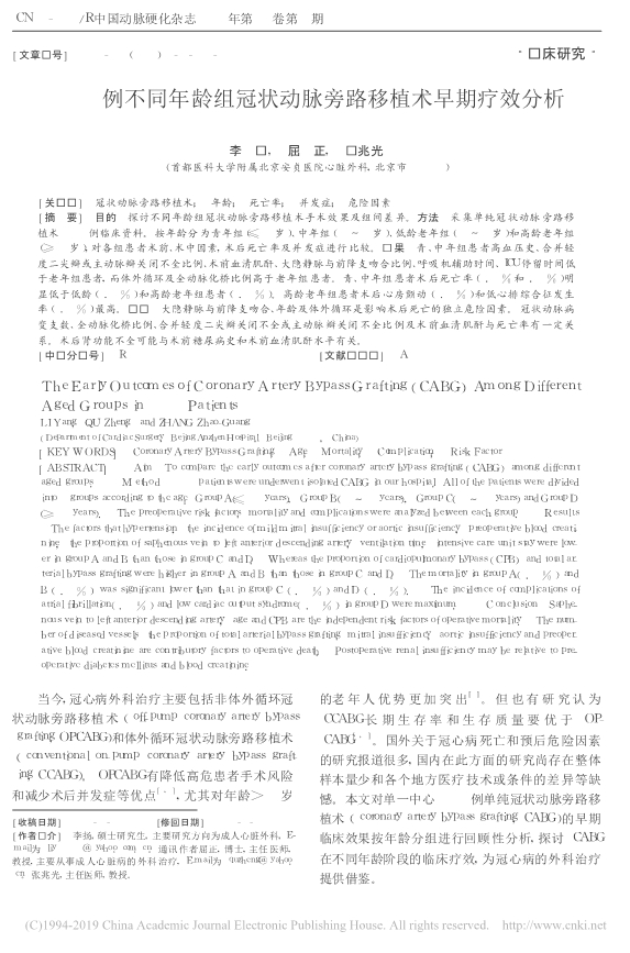 4303例不同年龄组冠状动脉旁路移植术早期疗效分析