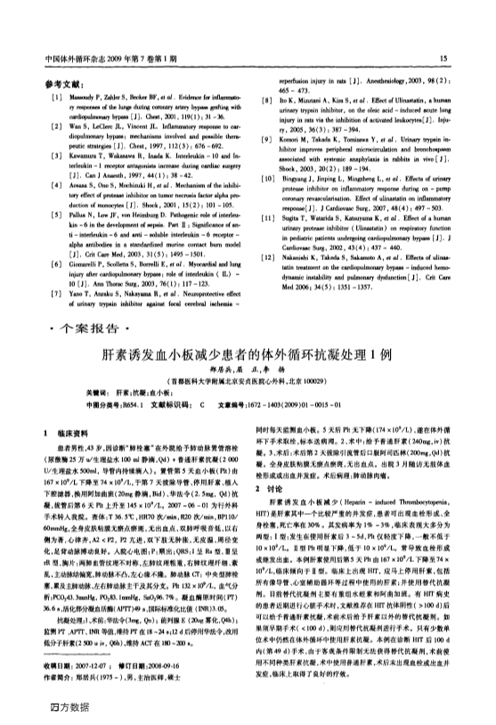 肝素诱发血小板减少患者的体外循环抗凝处理1例