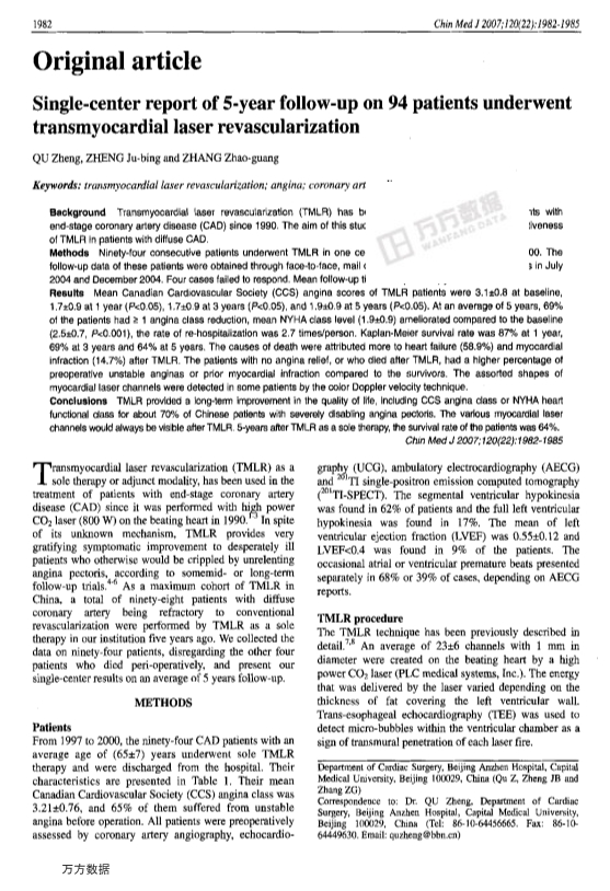 Single-center report of 5-year follow-up on 94 patients underwent transmyocardial laser revascularization
