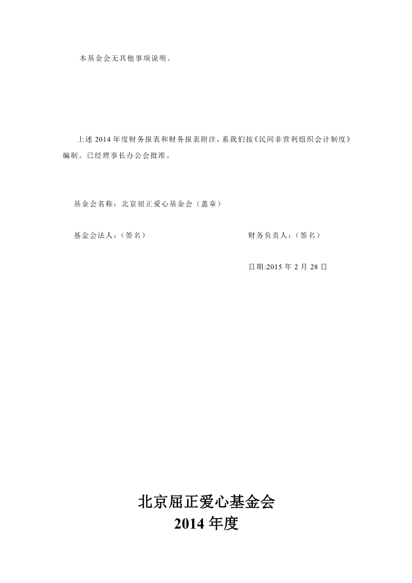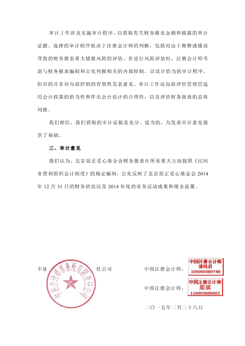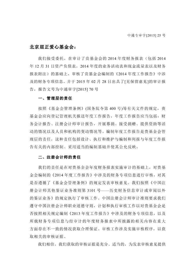 北京屈正爱心基金会2014年度审计报告