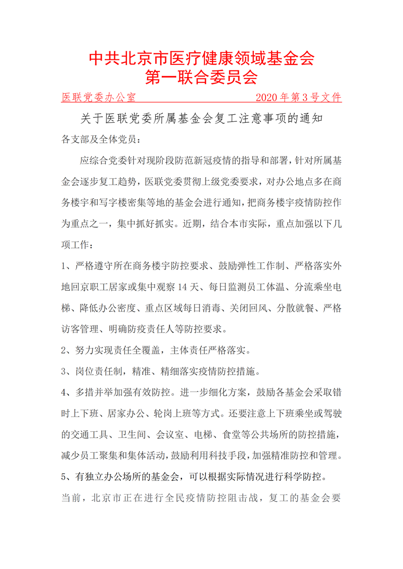 2020年第3号文件_关于医联党委所属基金会复工注意事项的通知