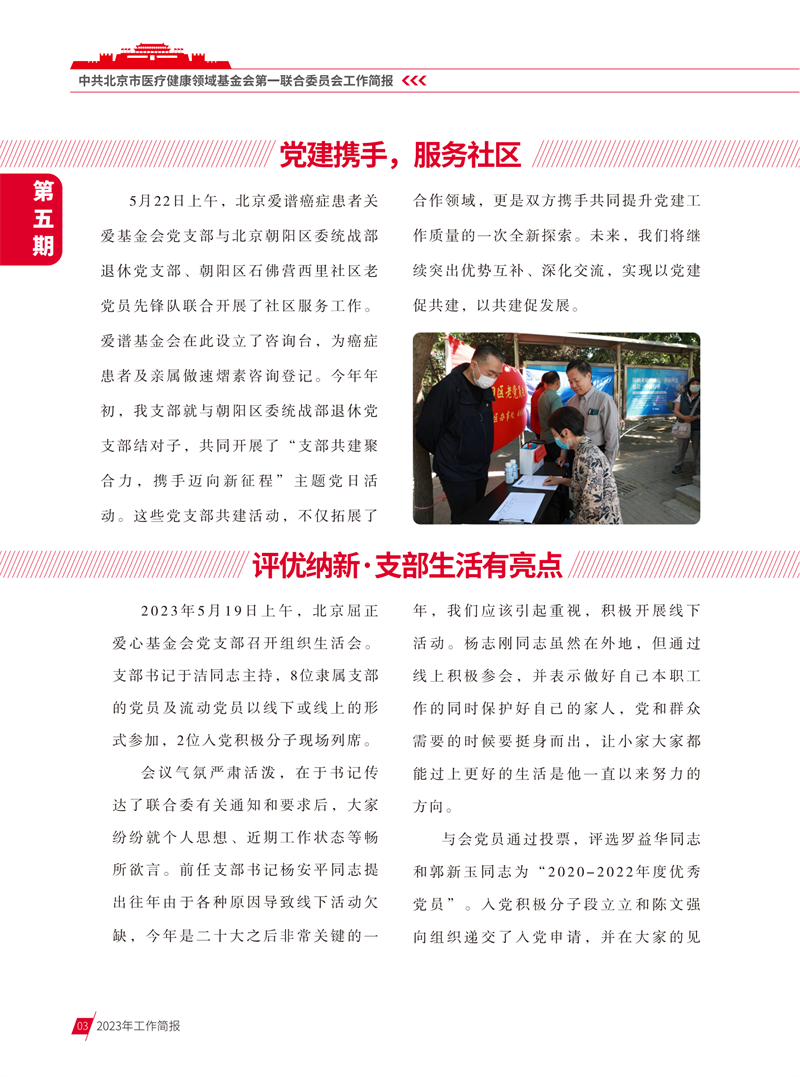 医疗健康领域基金会第一联合党委2023年5月工作简报