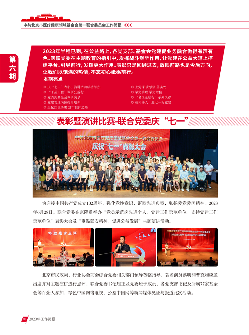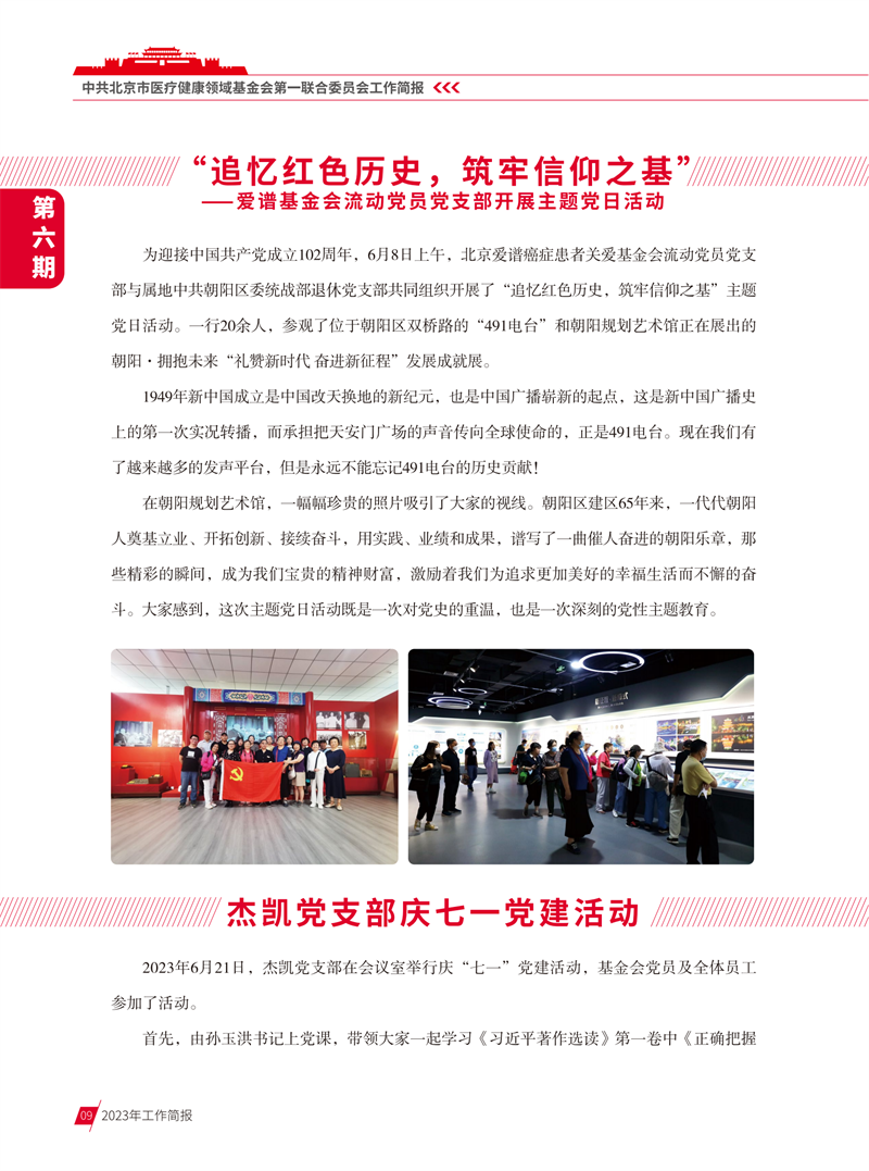 医疗健康领域基金会第一联合党委2023年6月工作简报