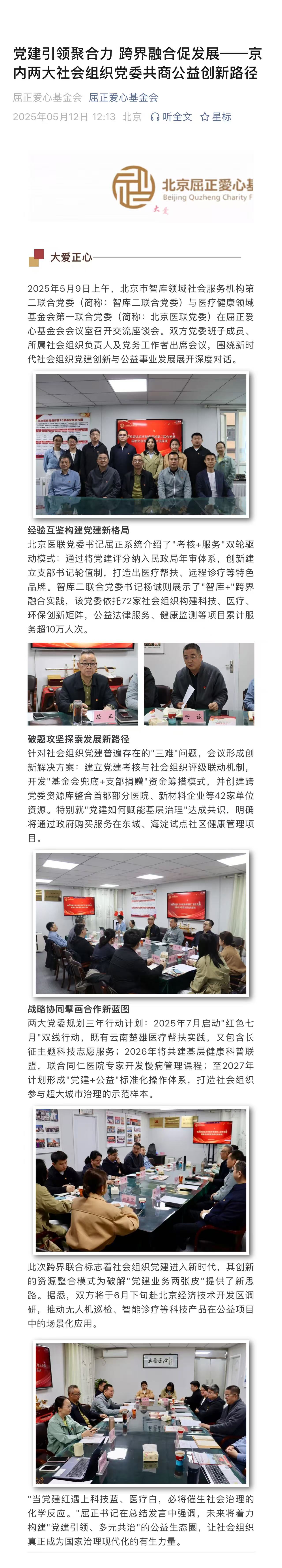 党建引领聚合力 跨界融合促发展--京内两大社会组织党委共商公益创新路径