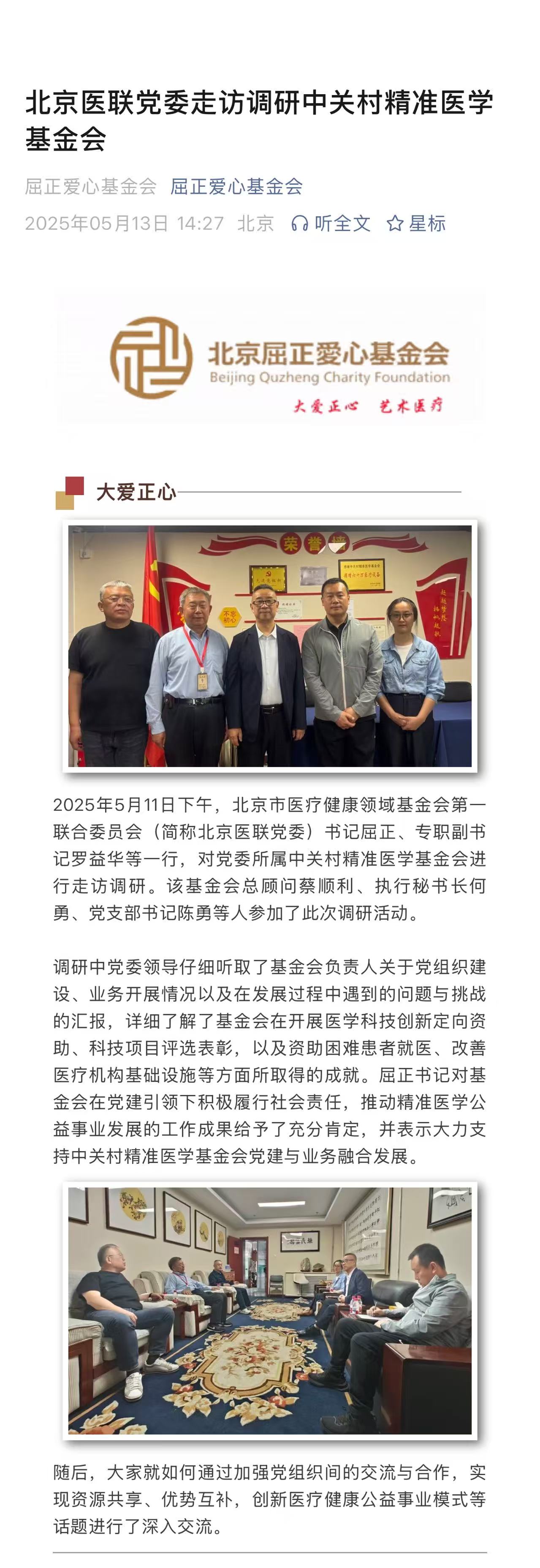 北京医联党委走访调研中关村精准医学基金会