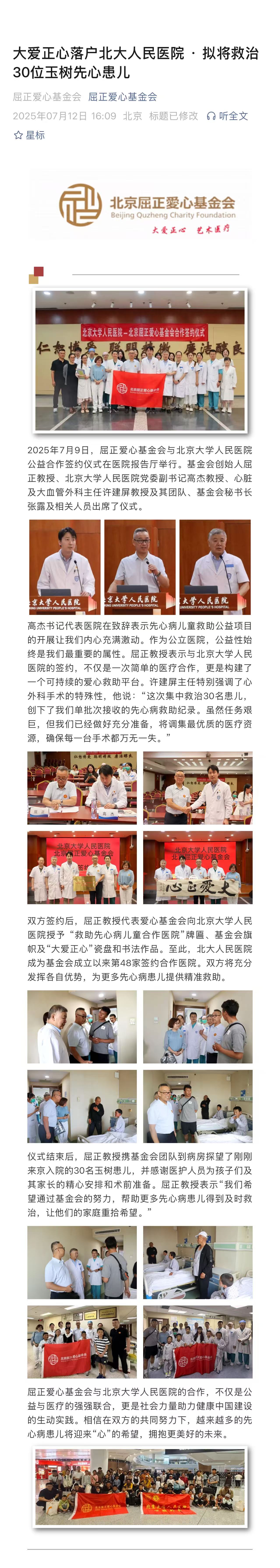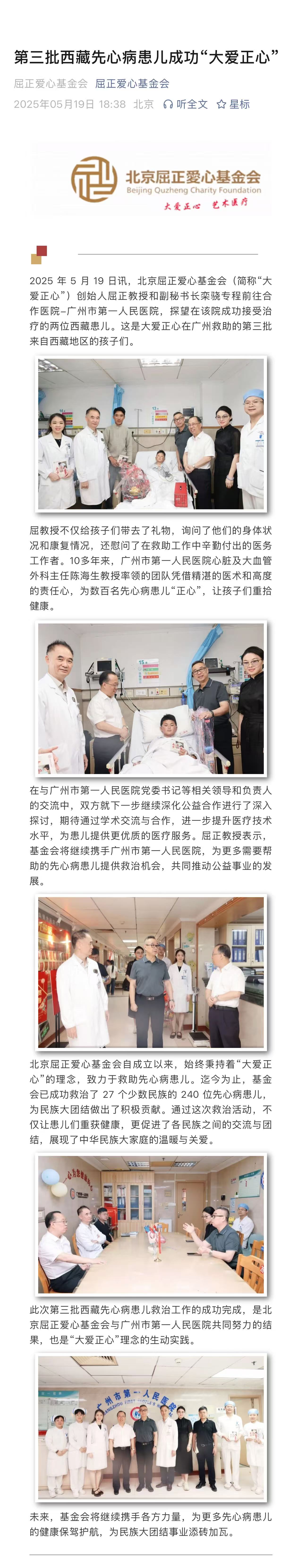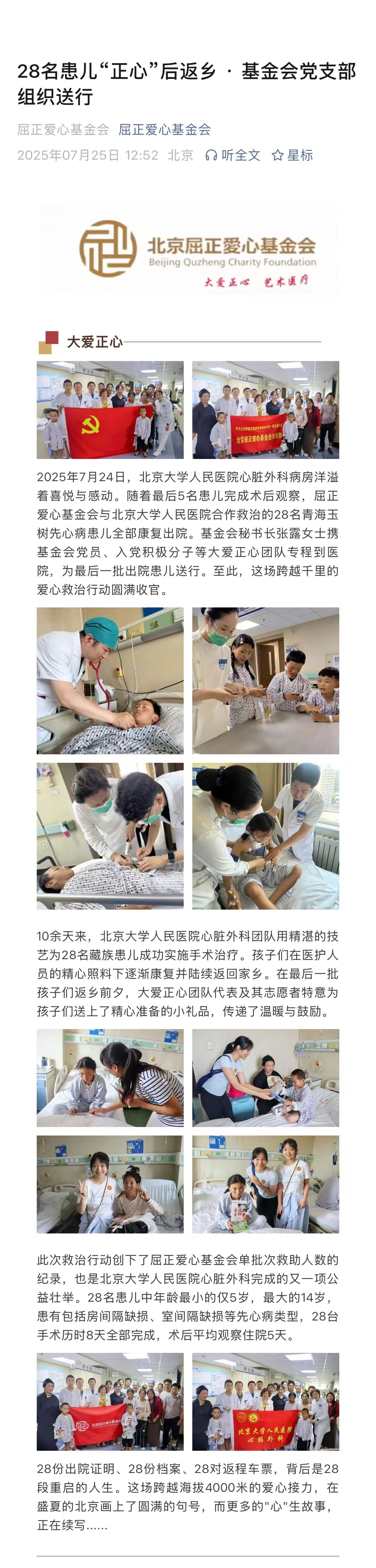 大爱正心落户北大人民医院·拟将救治 30位玉树先心患儿 屈正爱心基金会 屈正爱心基金
