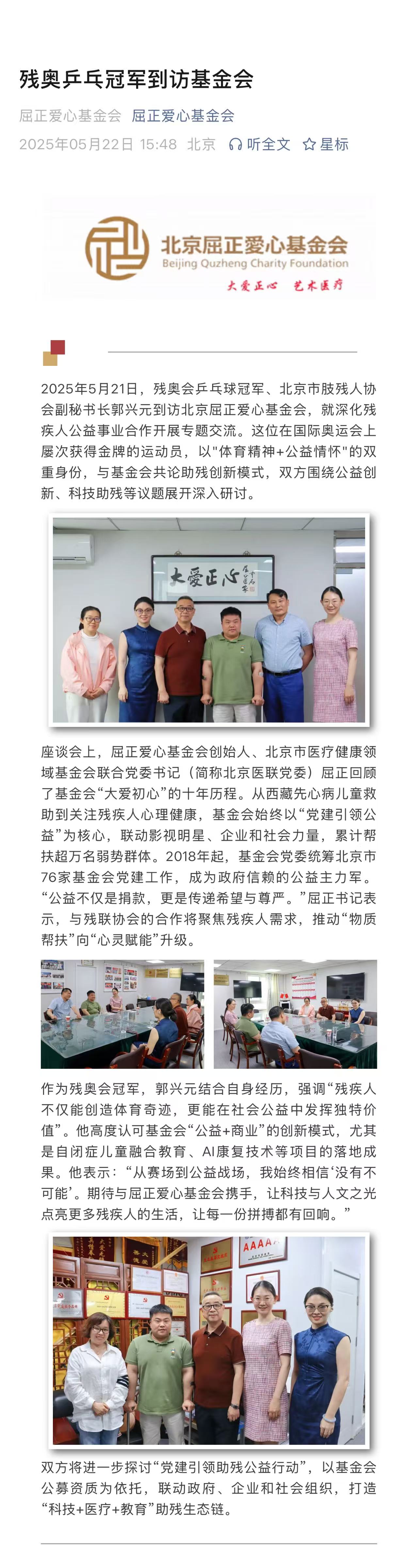 残奥乒乓冠军到访基金会