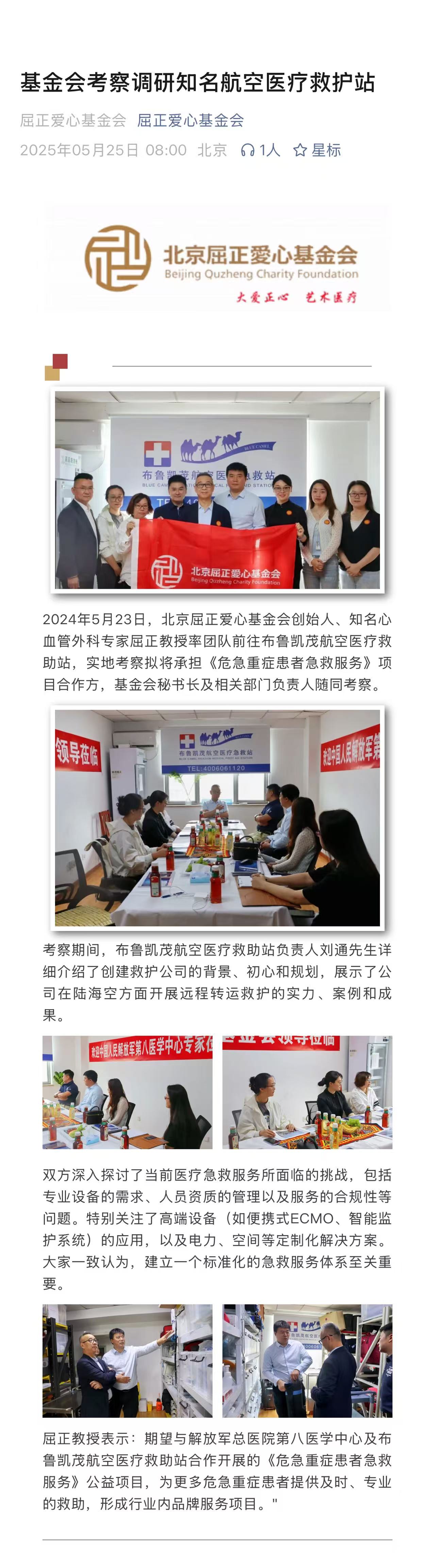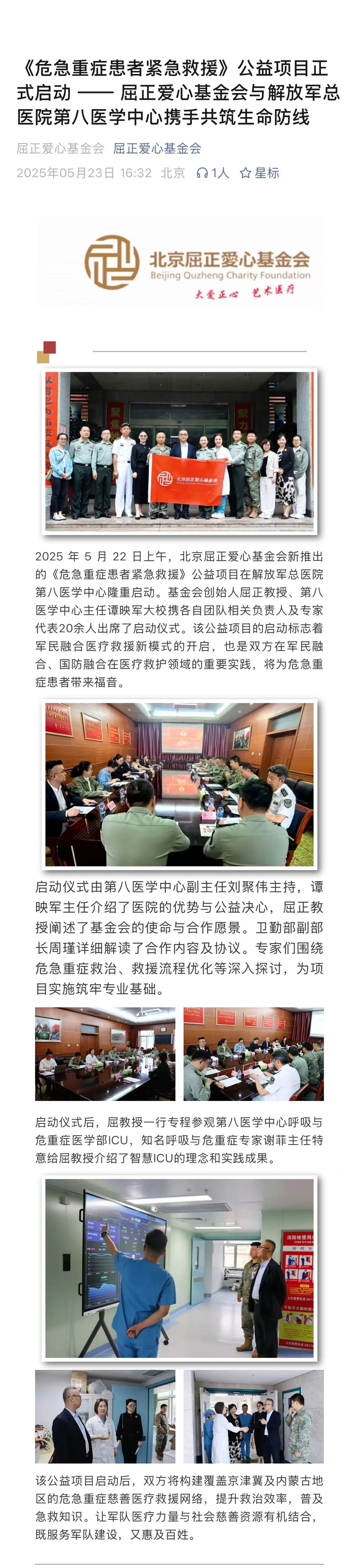 《危急重症患者紧急救援》公益项目正式启动 --屈正爱心基金会与解放军总医院第八医学中心携手共筑生命防线