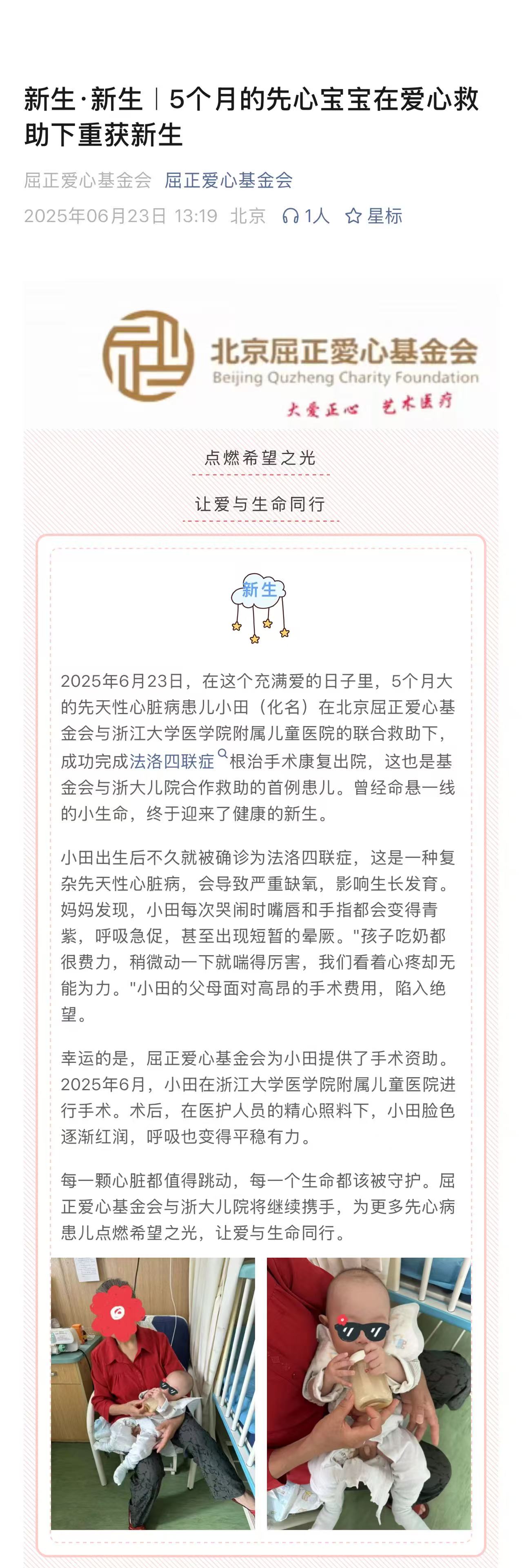新生·新生15个月的先心宝宝在爱心救助下重获新生