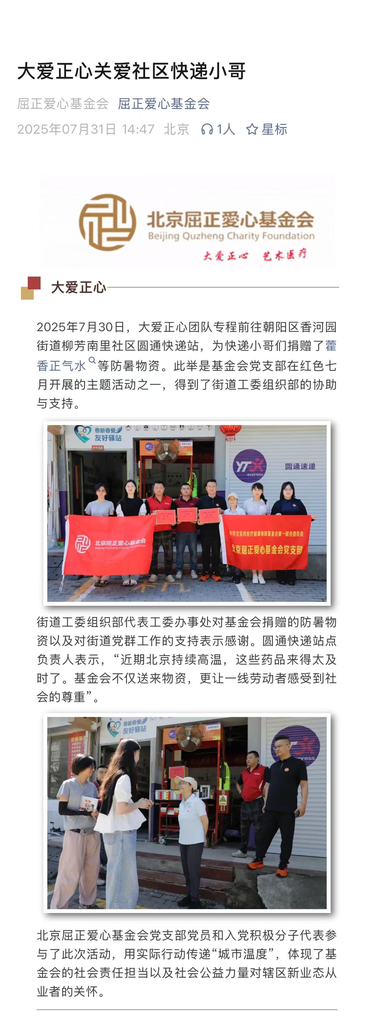 大爱正心关爱社区快递小哥