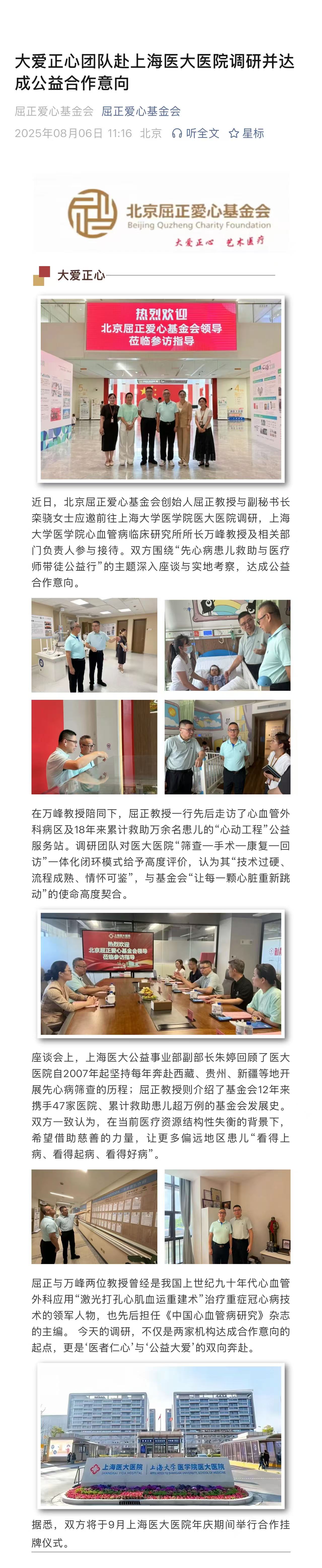 大爱正心团队赴上海医大医院调研并达成公益合作意向