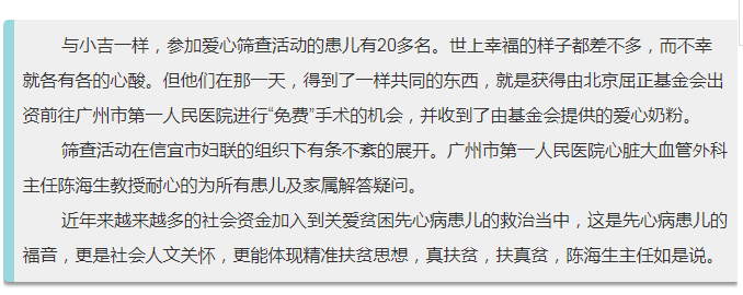 日前,屈正爱心基金会的合作医院——广州市第一人民医院心外科主任陈海生带领他的团队,在广东省信宜市开展了先心病患儿筛查活动。请看来自广州筛查一线的报道。