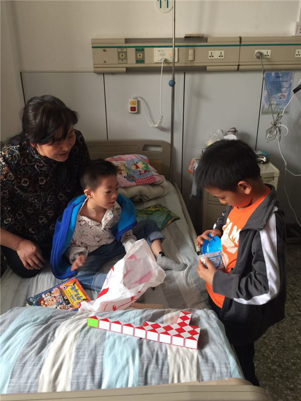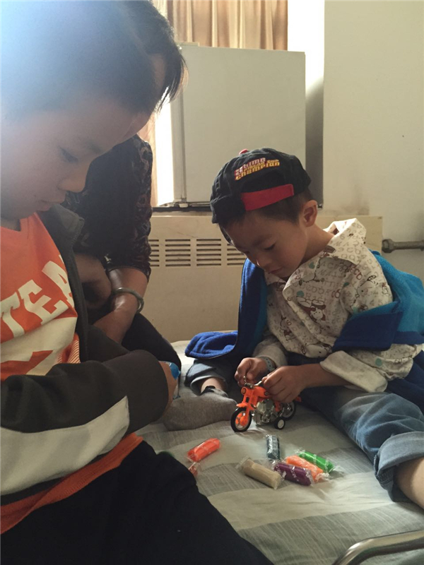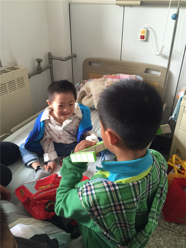 2016年4月15日下午,北京屈正爱心基金会(BQZ)的志愿者-爱心妈妈冯颖女士和张红升女士带着孩子,带着礼物,到煤炭总医院心脏中心探望了术后康复中的甘肃患儿高XX。看着孩子们在病床上愉快地做游戏,用童声童语交流着,几位母亲露出喜悦的笑容。小小的病房里流动着爱的暖流,十分感人!