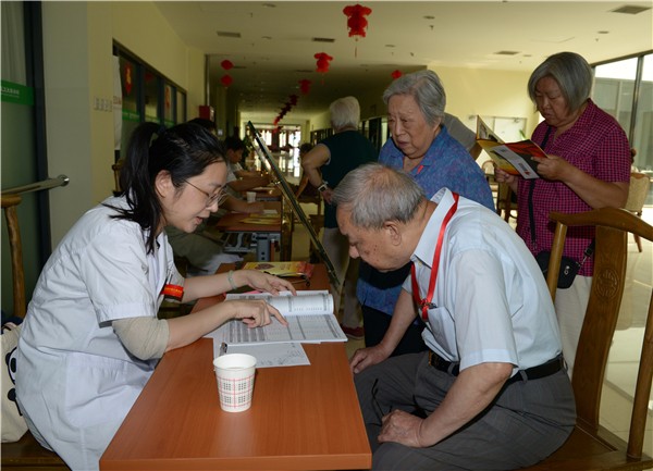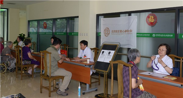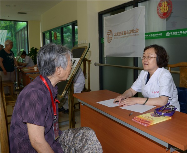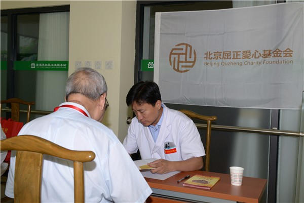 2017年6月21日,夏至的滚滚热浪中,屈正爱心基金会组织多学科医学专家为金手杖国际养老公寓的老人们带去一场义诊。
